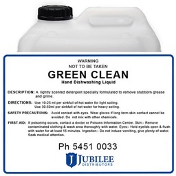 Our Green Clean dishwashing detergent (sink) is a lightly scented detergent specially formulated to remove stubborn grease and grime. Directions: Use 10-25ml per sinkful of hot water for light soiling. Use 30-50ml per sinkful of hot water for heavy soiling. Available in 5L and 20L.