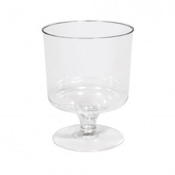 Traditional shape clear moulded plastic wine goblet 170ml. Short stem that is already attached. Sleeve 10 Carton 250